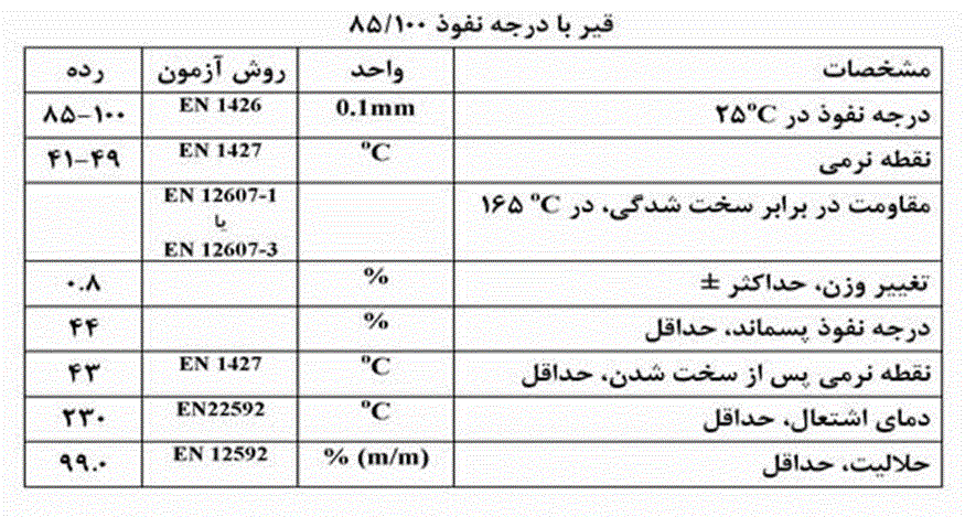 مشخصات قیر 100-85